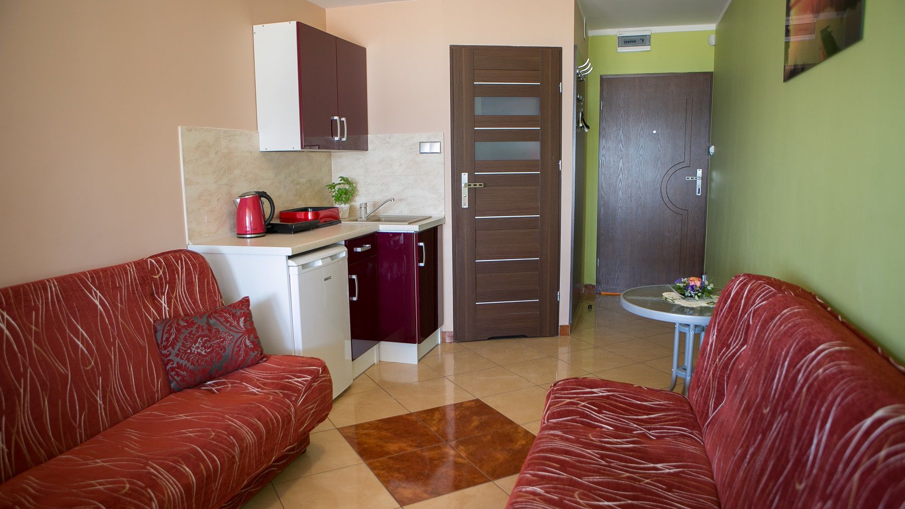 Pokój na piętrze z 9 m2 balkonem z widokiem na jezioro i plażę. Wejście bezpośrednio przy plaży od strony al. Plażowej.
